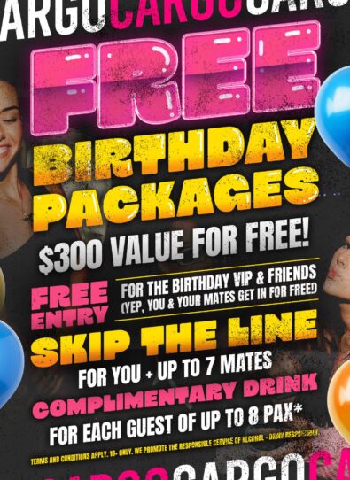 Cocktails by day, dancing by night, unwind or ignite at Cargo… your ultimate harbourside destination!